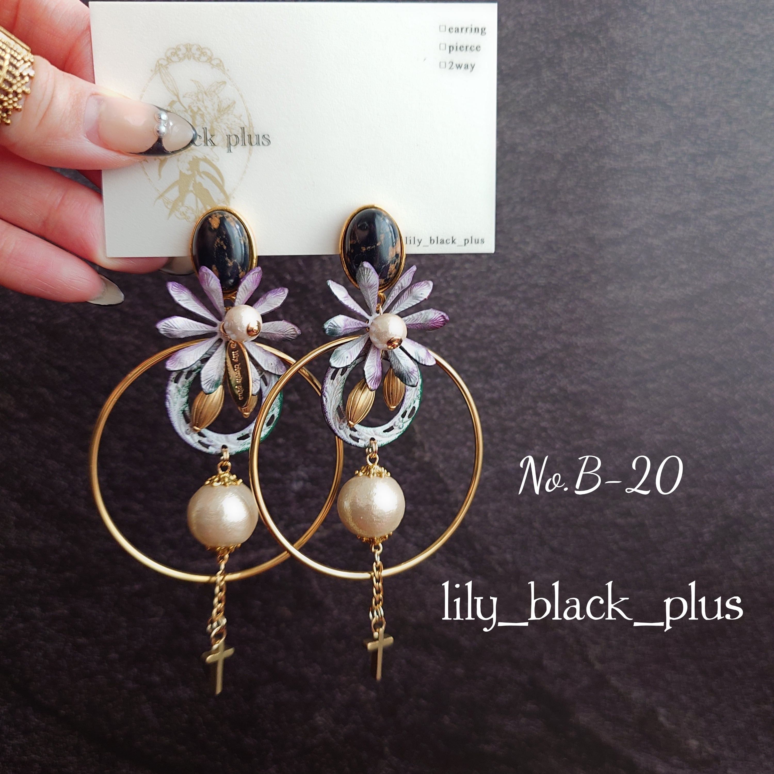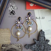 No.B-20 original paint真鍮フラワーとプレートのフープピアス/イヤリング