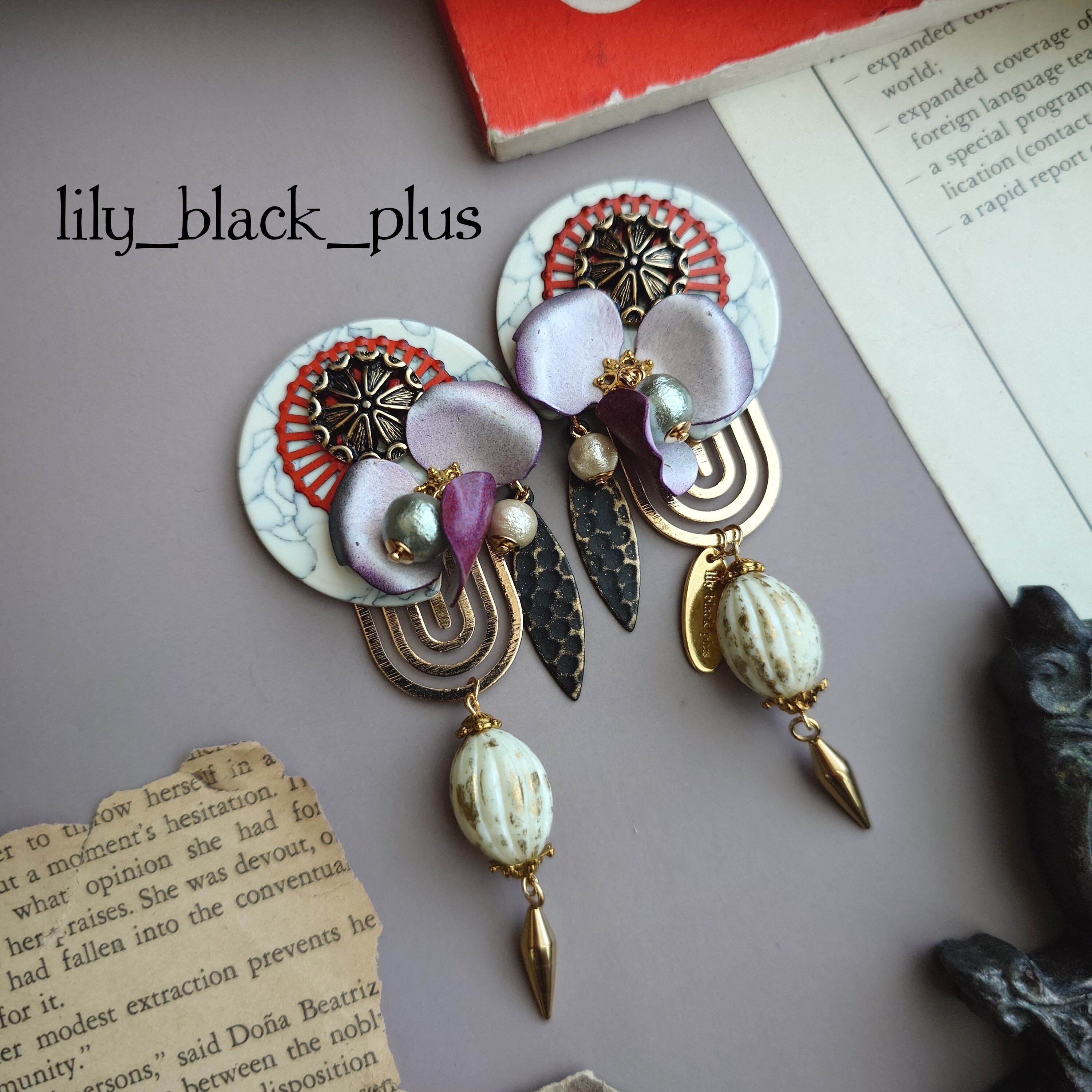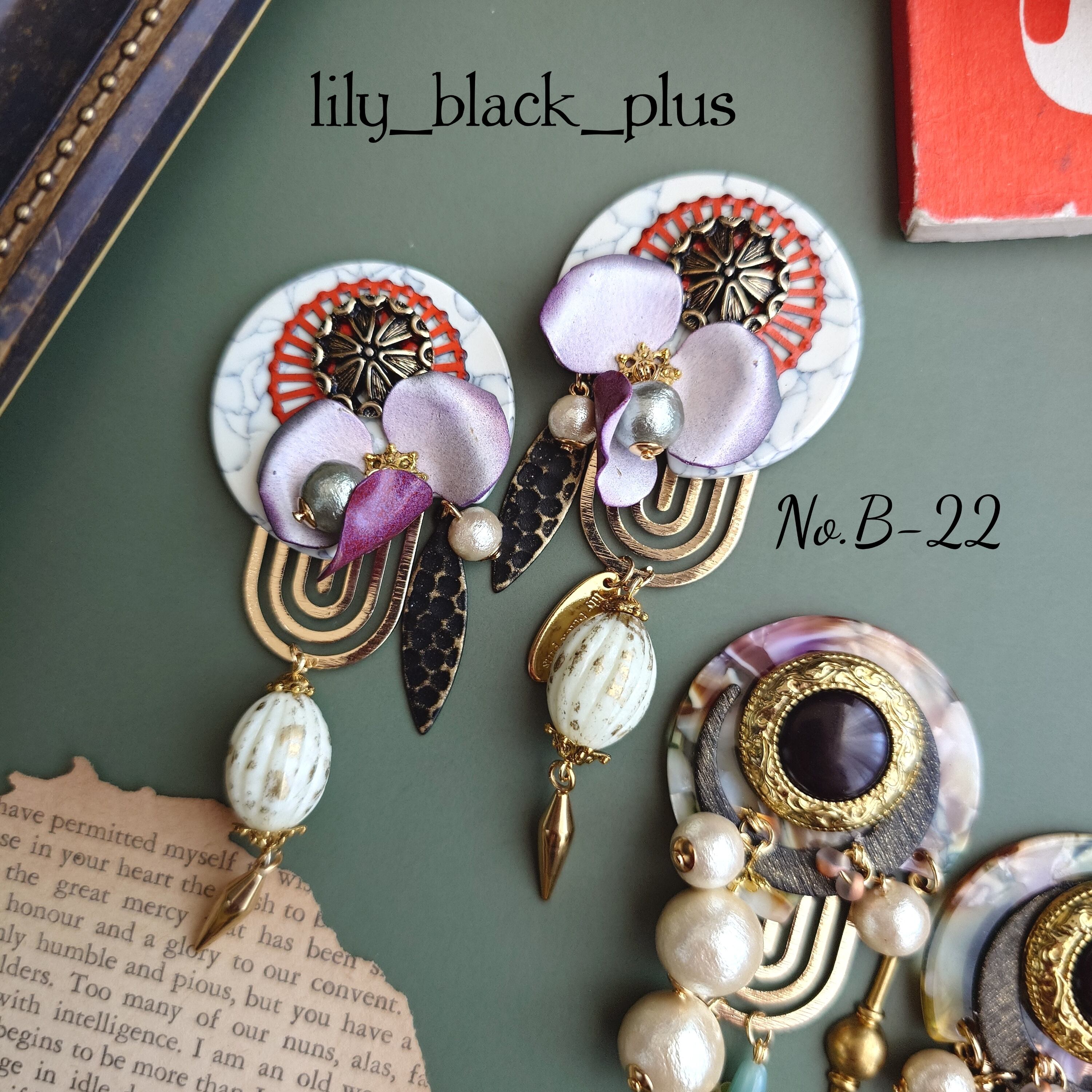 【イヤリング商品】No.B-22 プレートとbuttoのoriginal paint真鍮フラワーイヤリング
