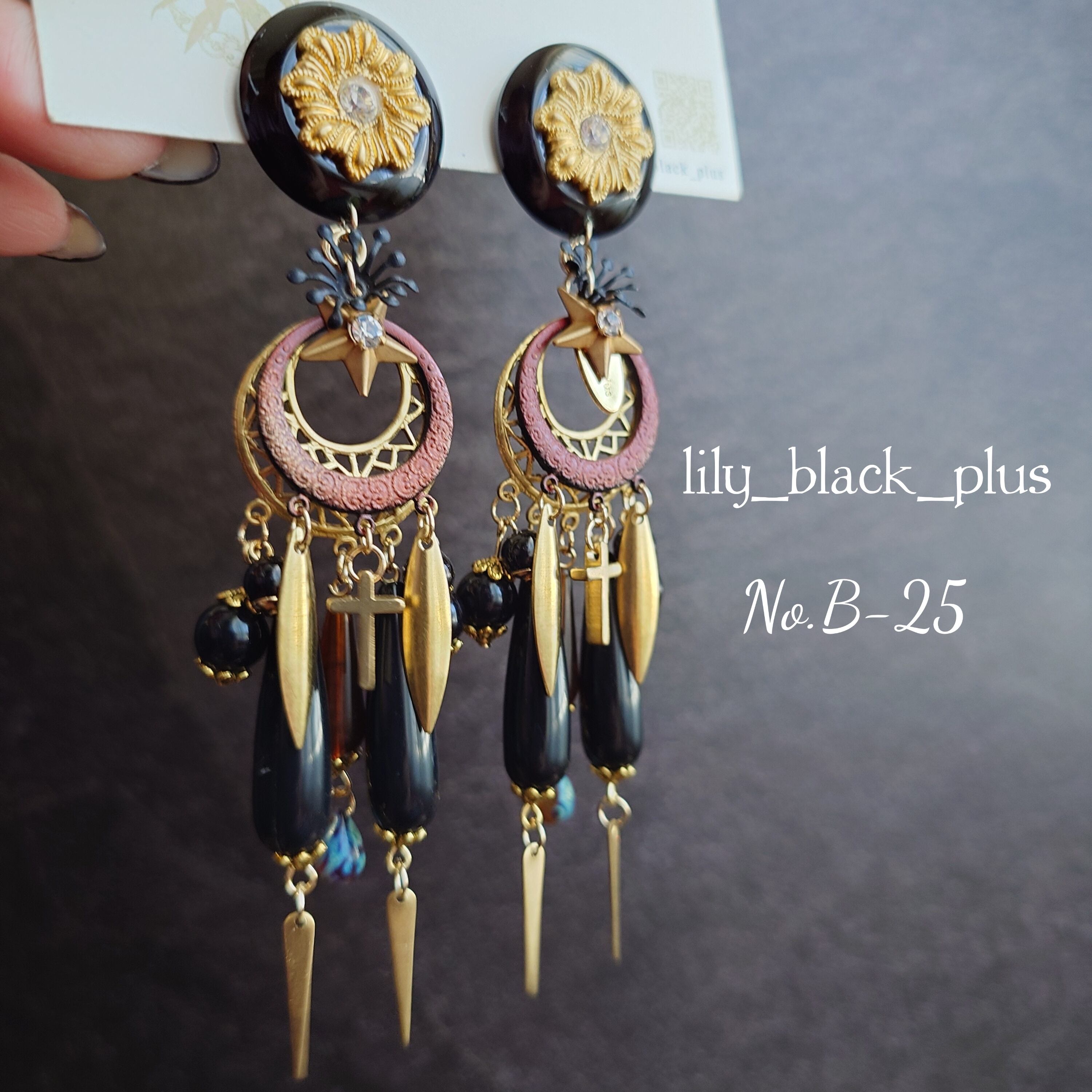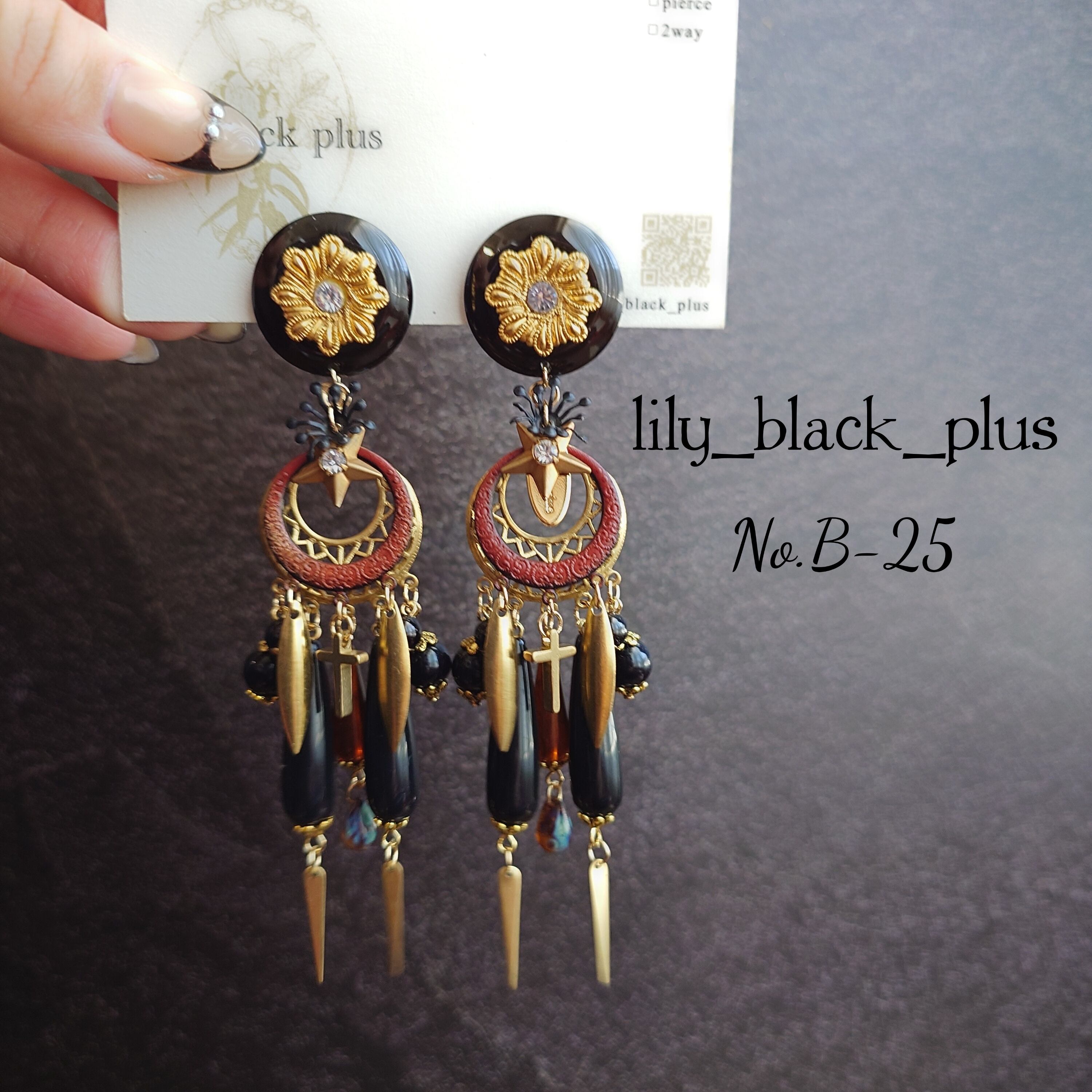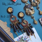 No.B-25 buttonとVintage真鍮のブラックビーズピアス/イヤリング