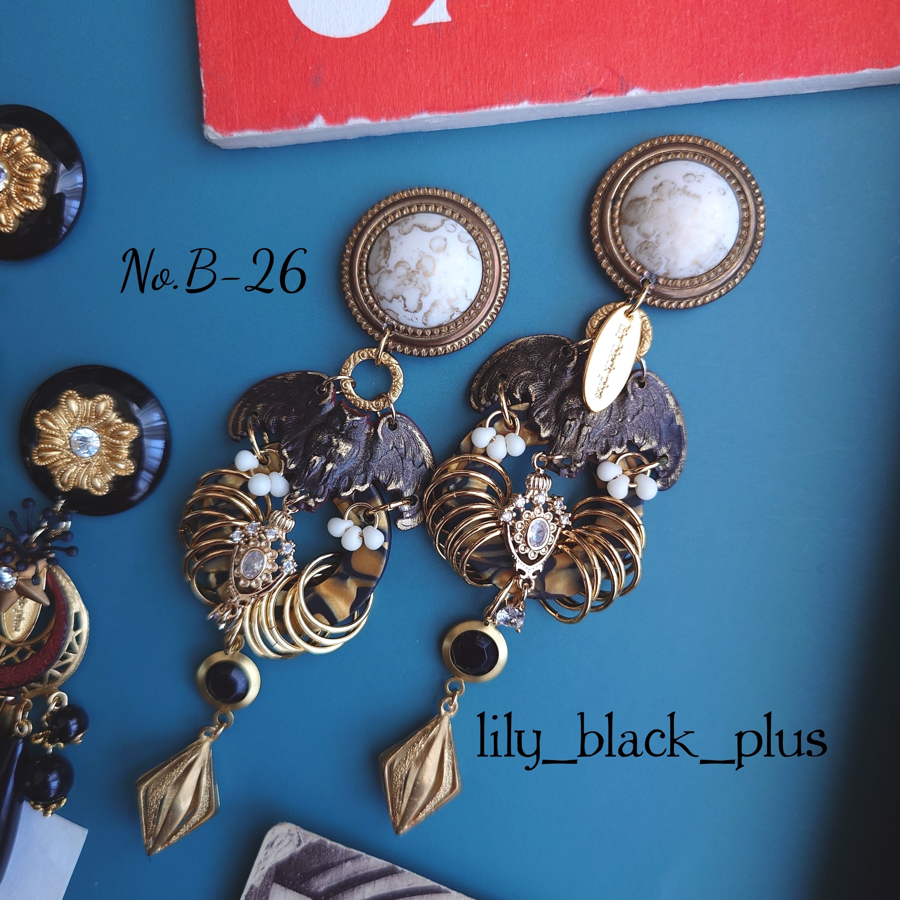No.B-26 buttonと真鍮フクロウのVintageリングピアス/イヤリング