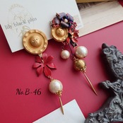 反対側には右と同じメタルボタンをトップに赤のヴィンテージ真鍮とコットンパールを合わせたアクセサリーです。
