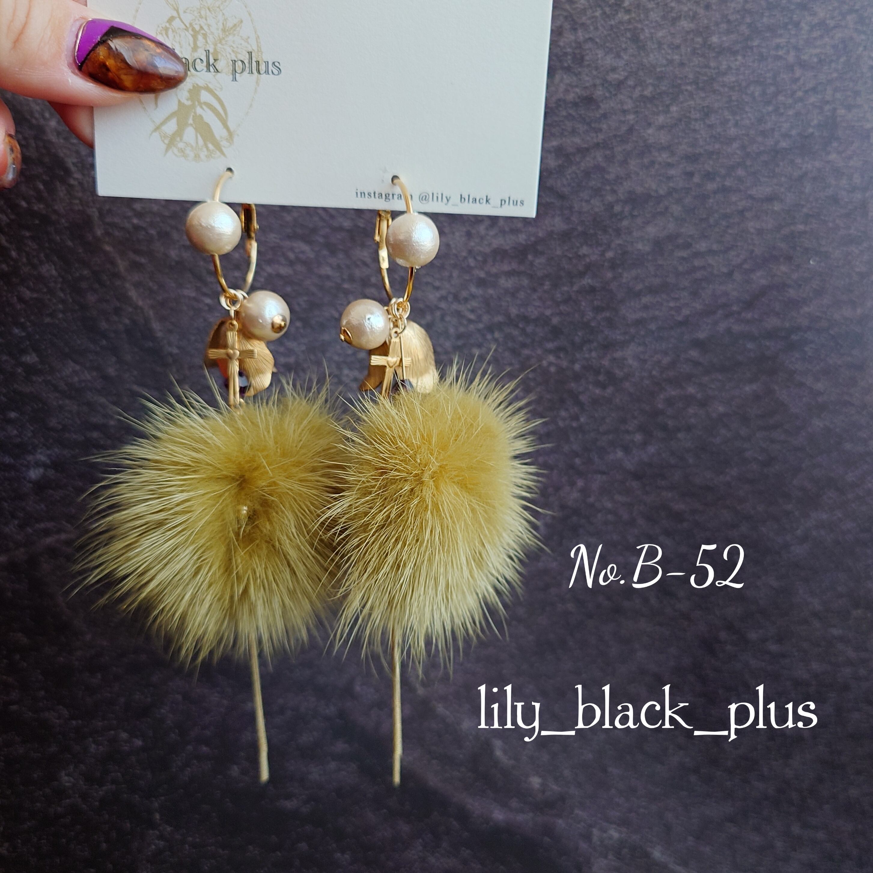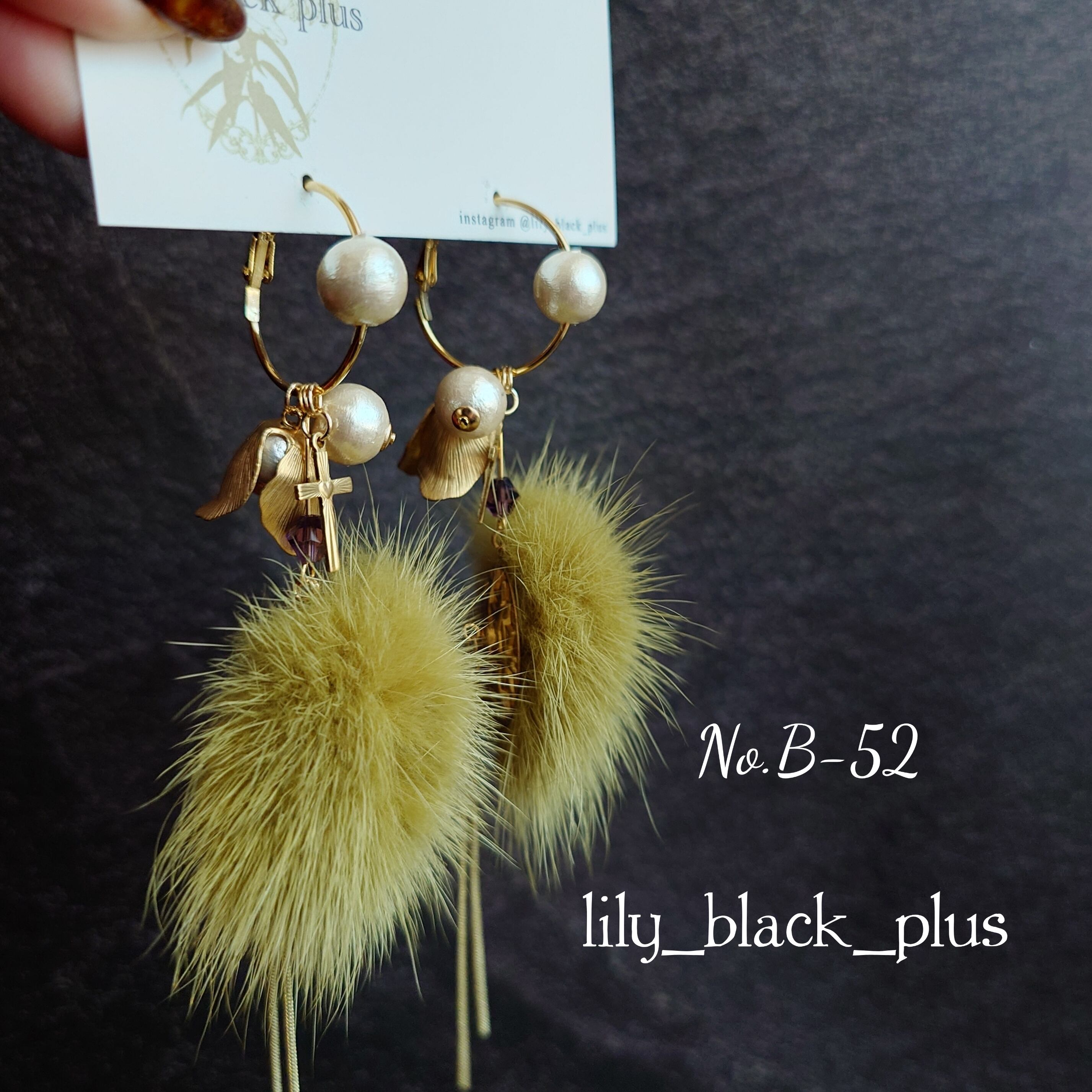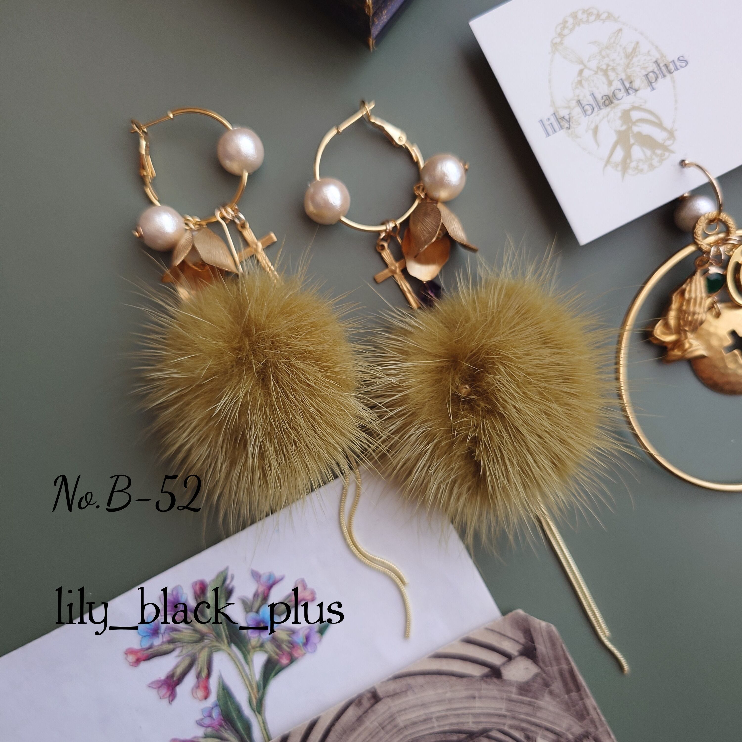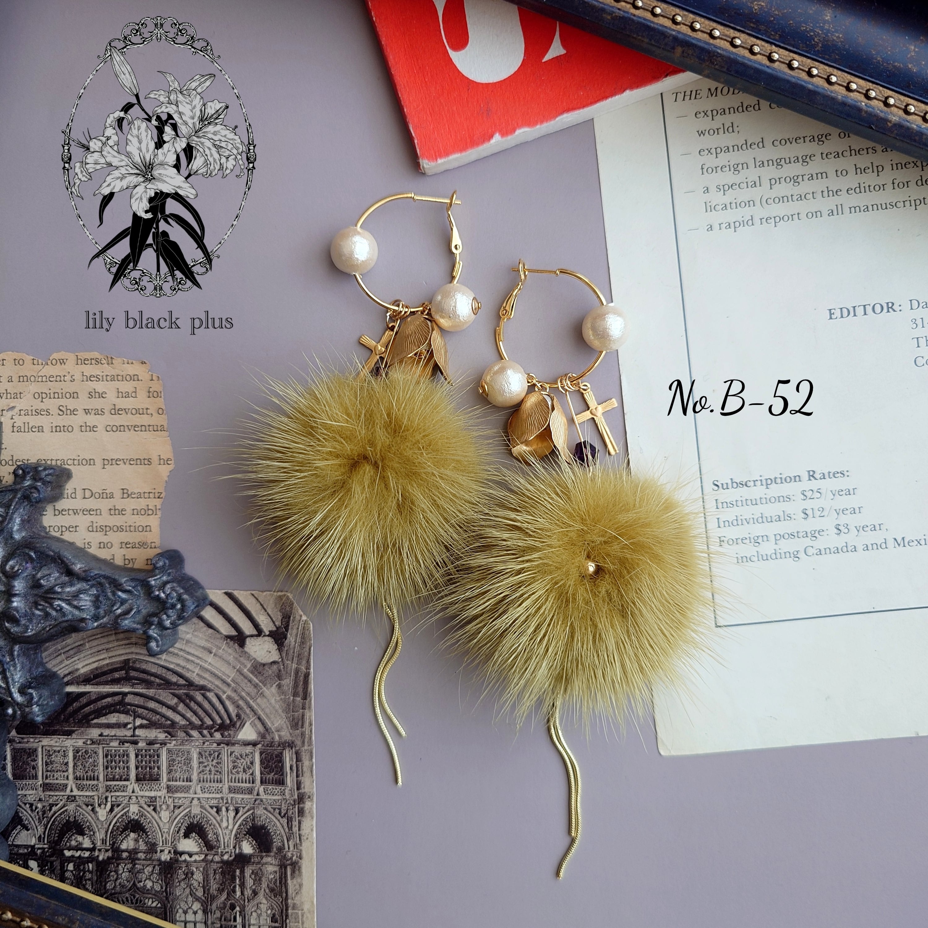 【ピアス商品】No.B-52 つぼみ真鍮とふわふわファーのフープピアス