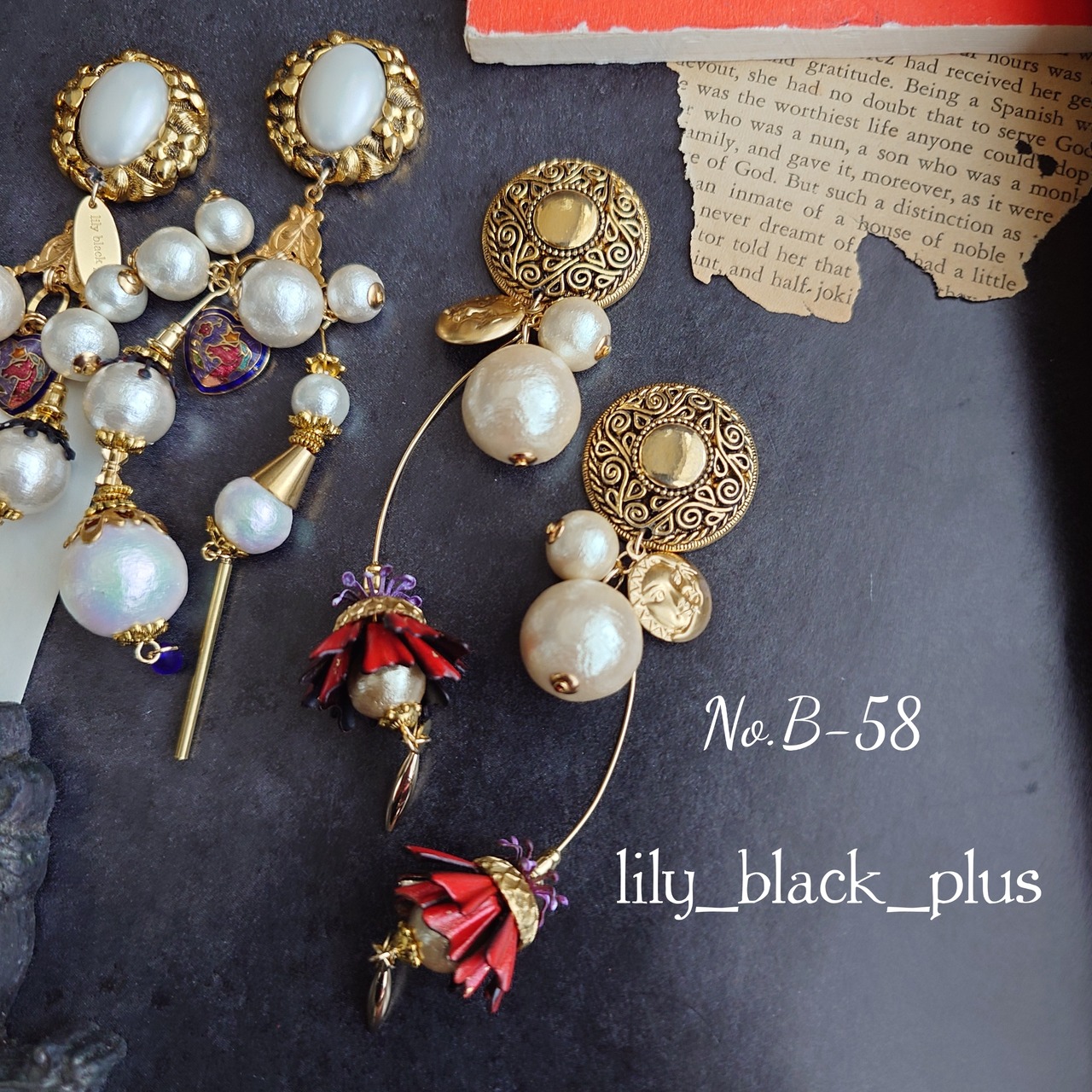 No.B-58 buttonと真鍮フラワーのコットンパール ピアス/イヤリング