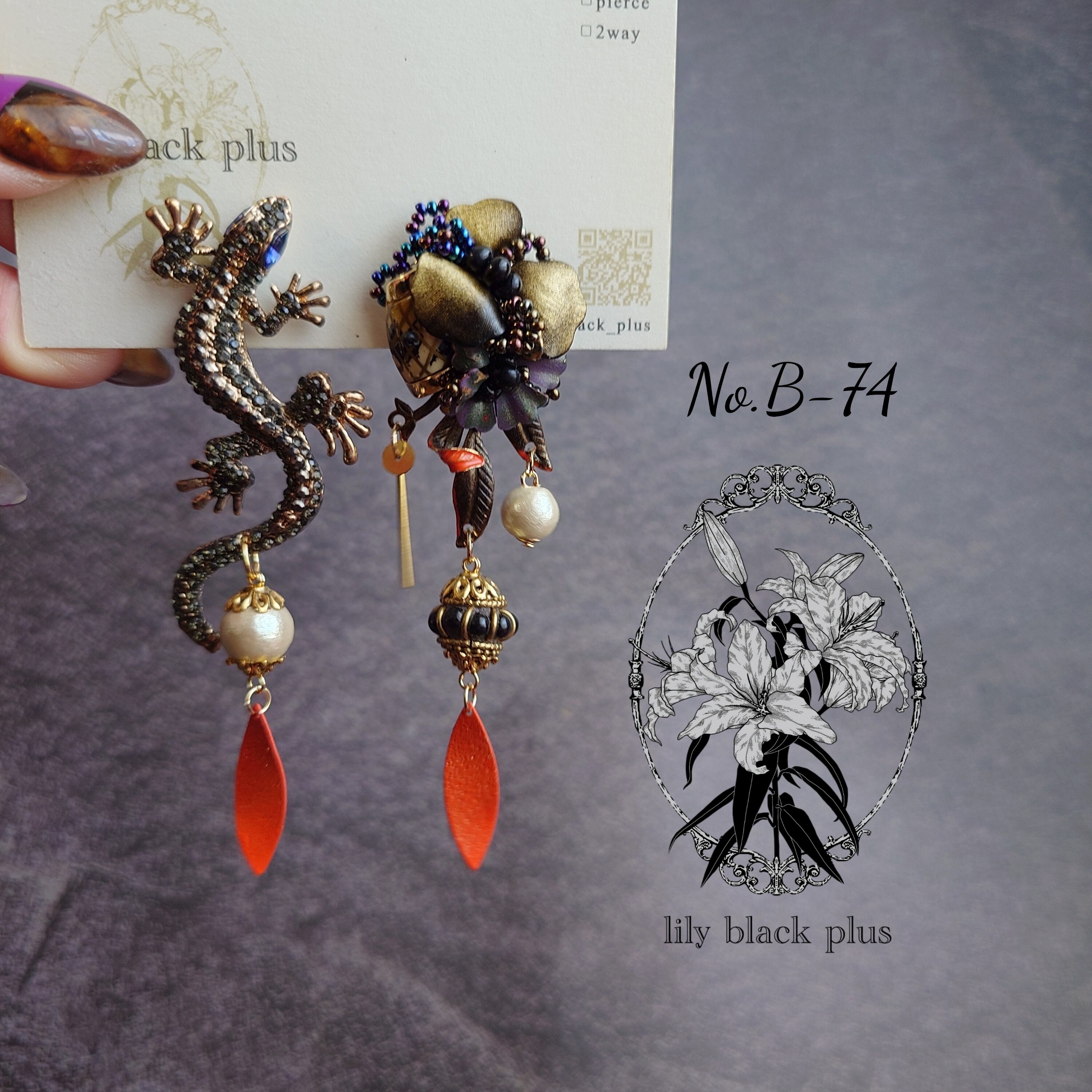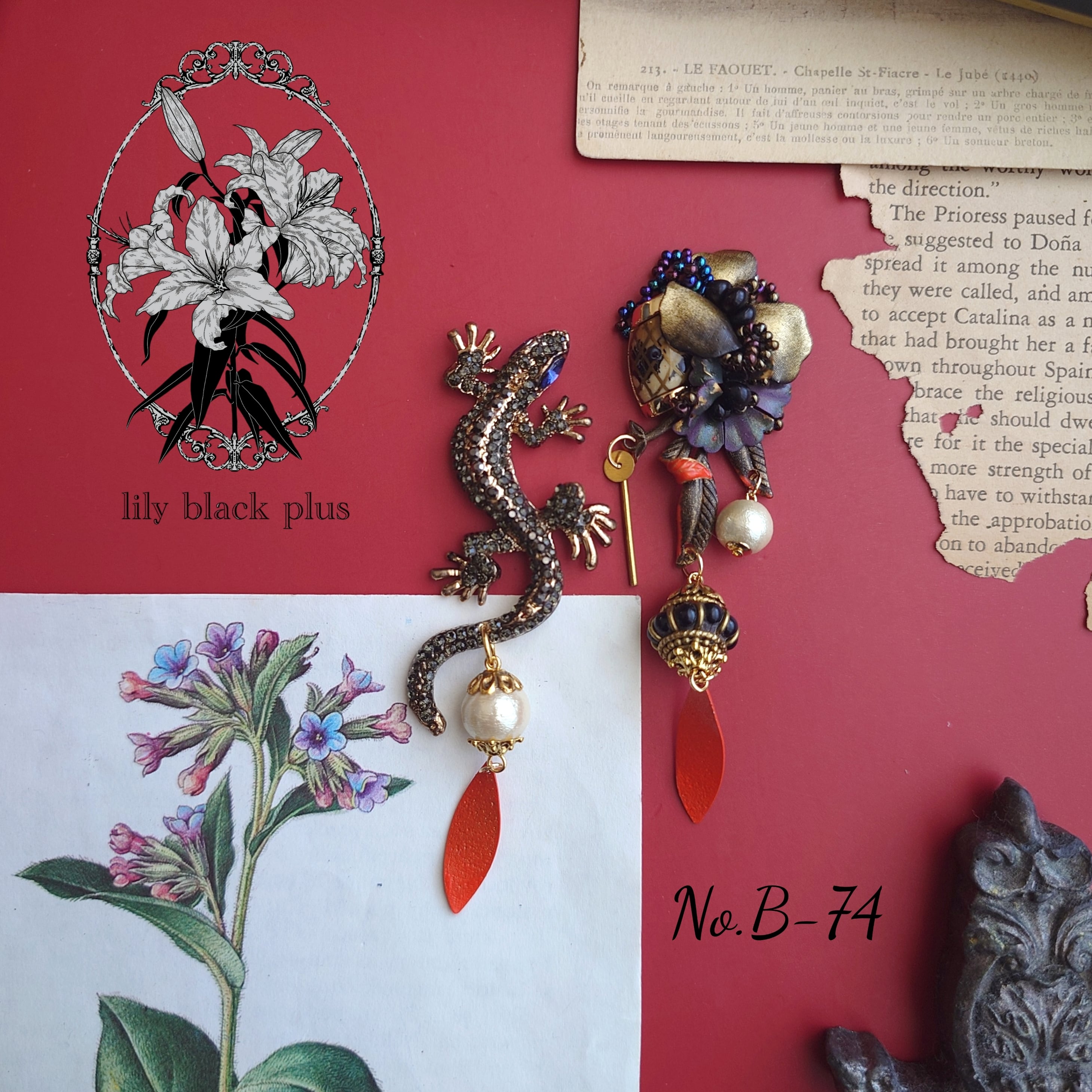 No.B-74 〜button S series〜original paint真鍮トカゲピアス/イヤリング