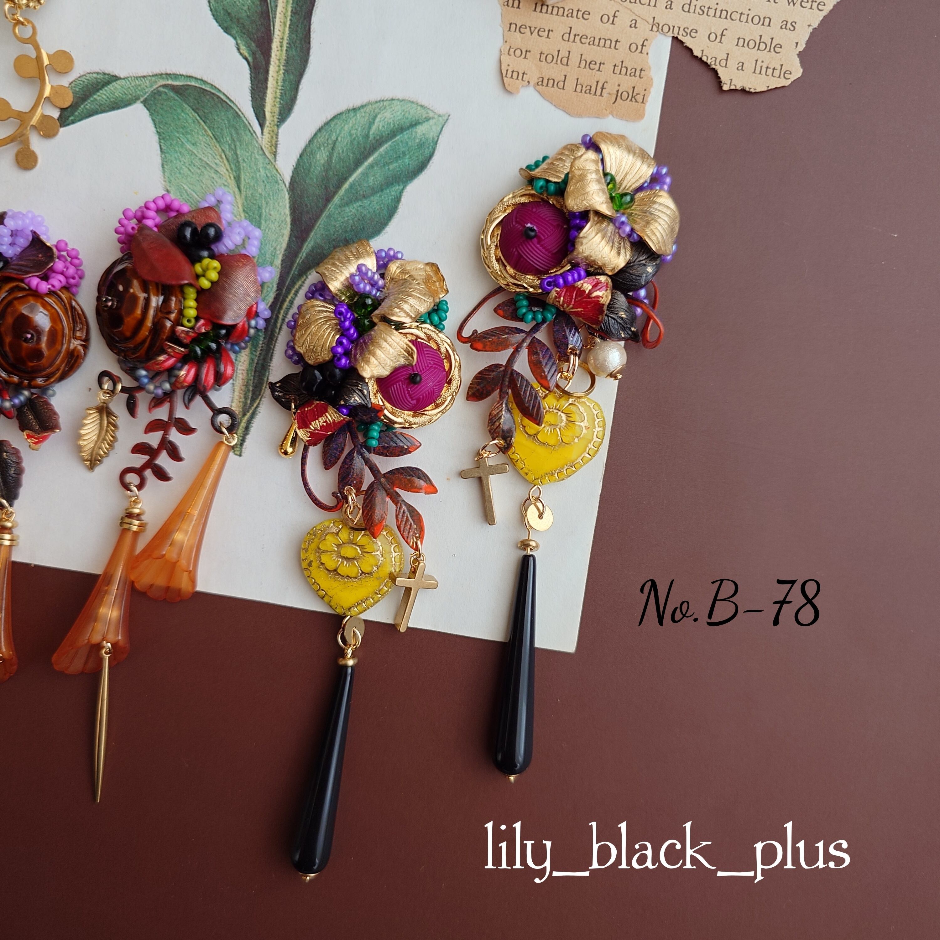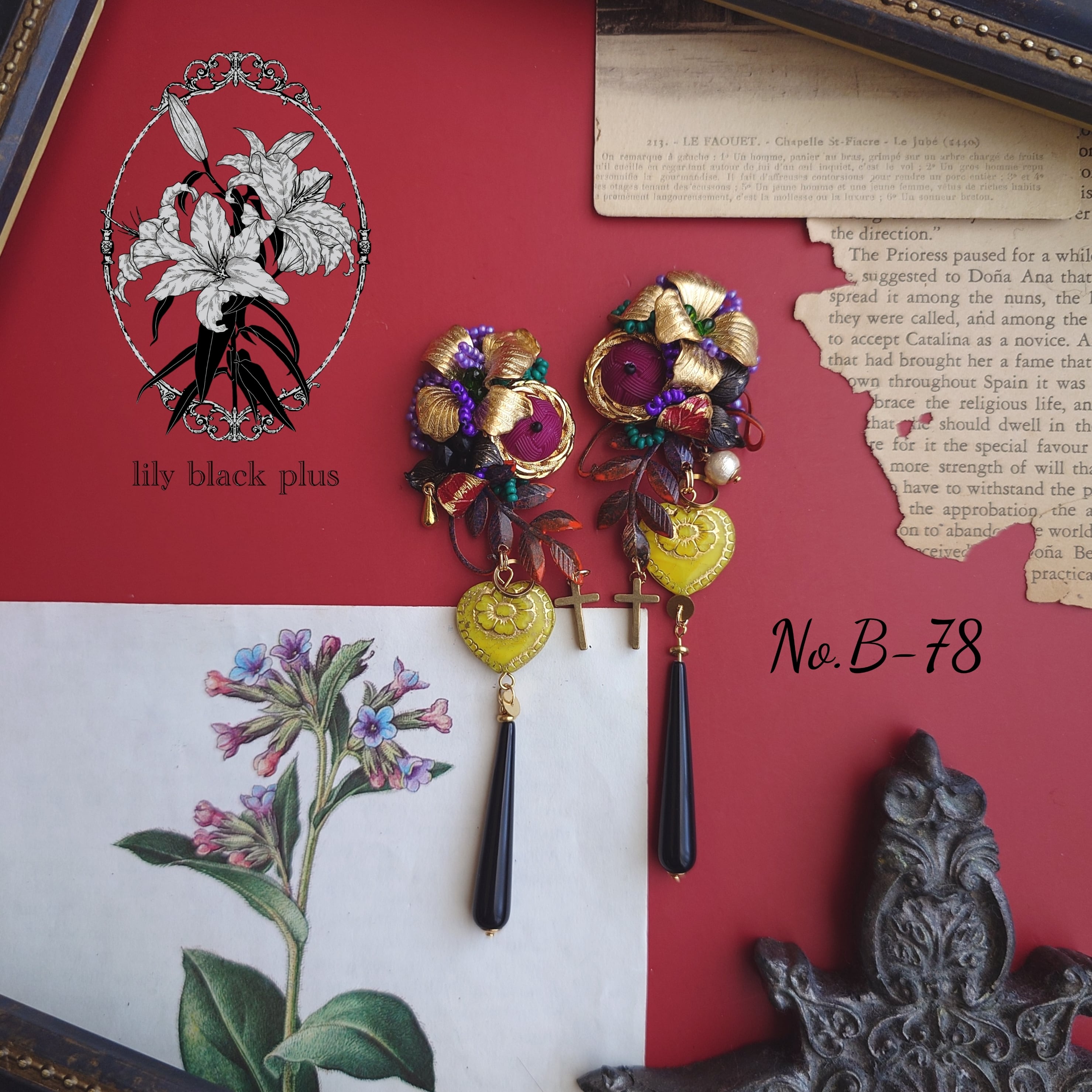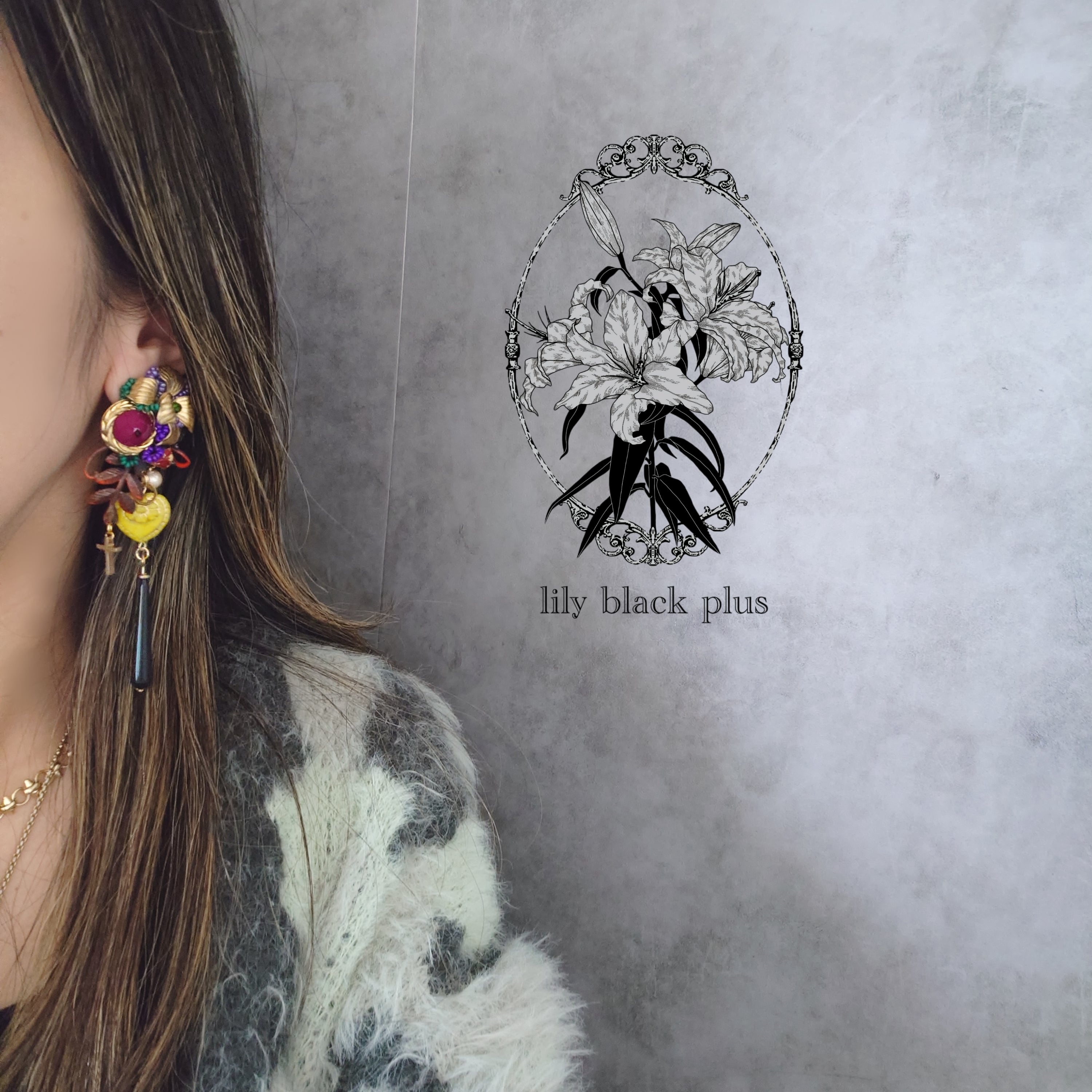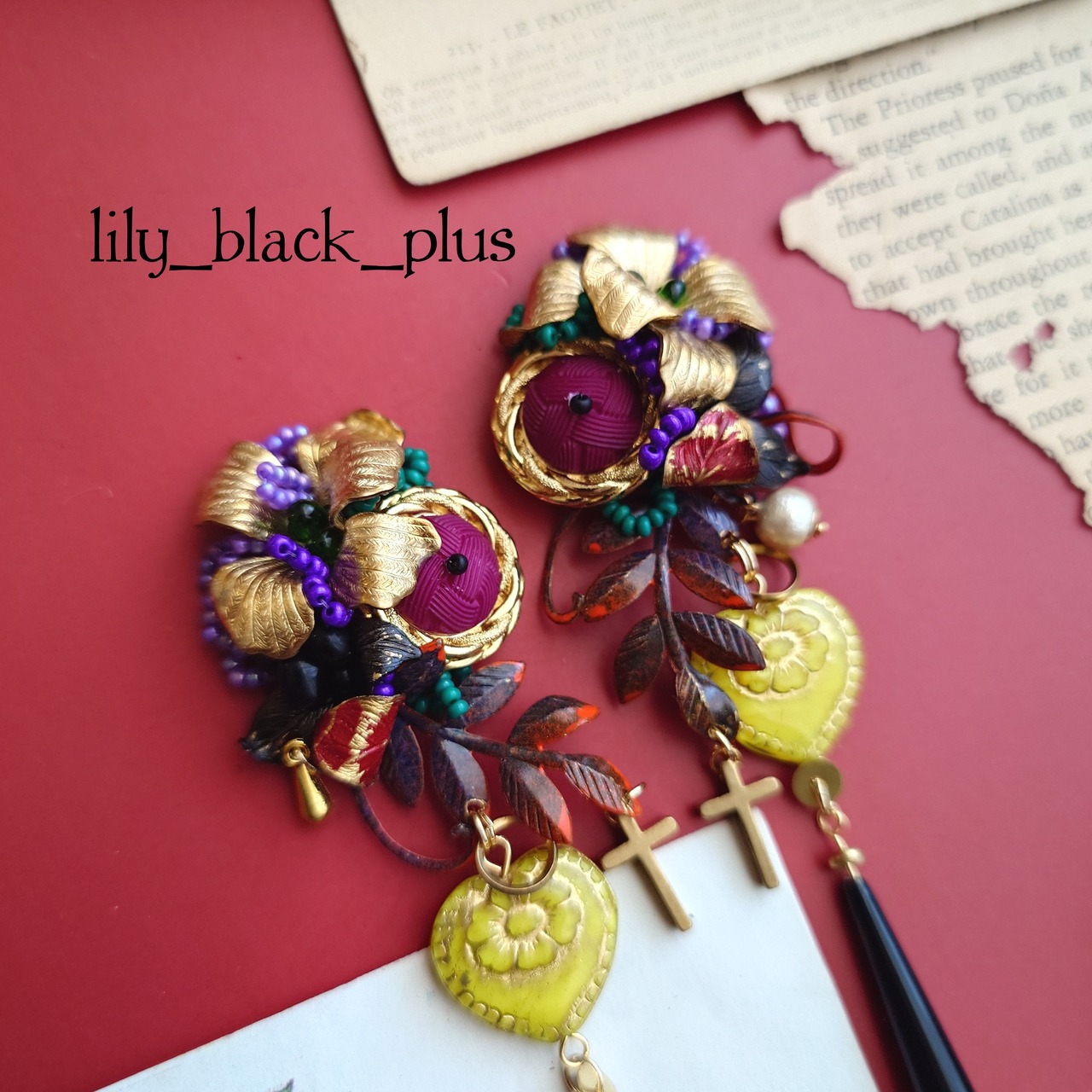 下側にはハートのチェコビーズにブラックビーズを合わせました。