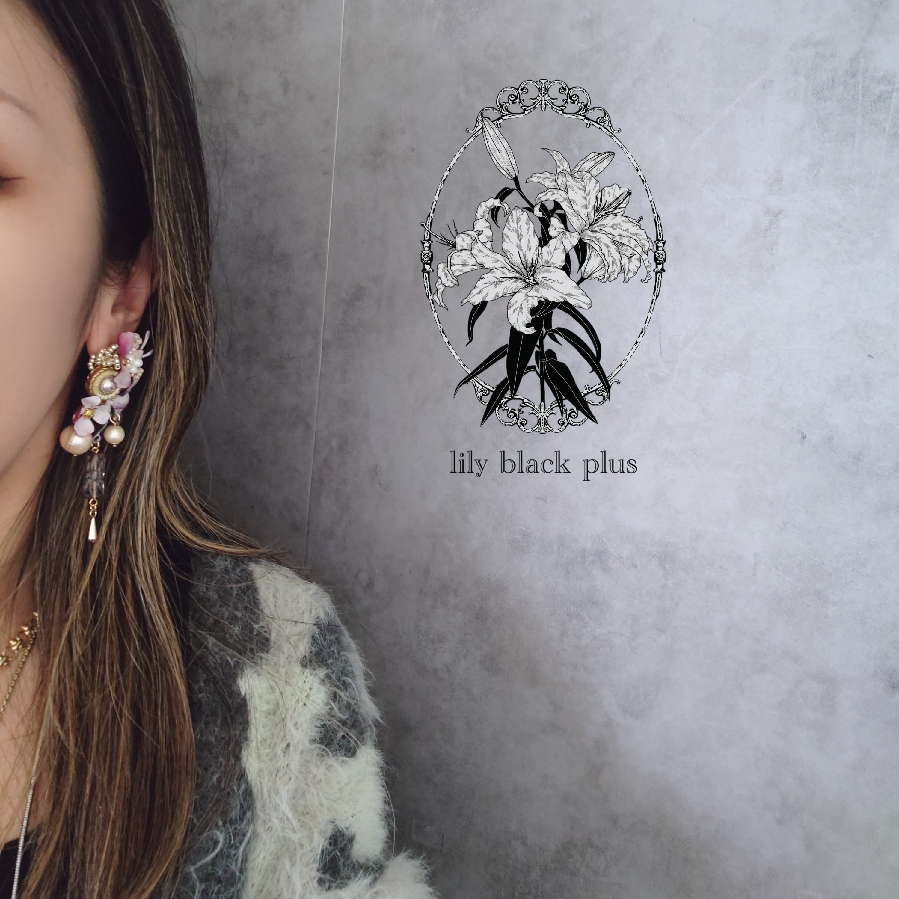 下側にはコットンパールとガラスビーズを合わせたアクセサリーです。