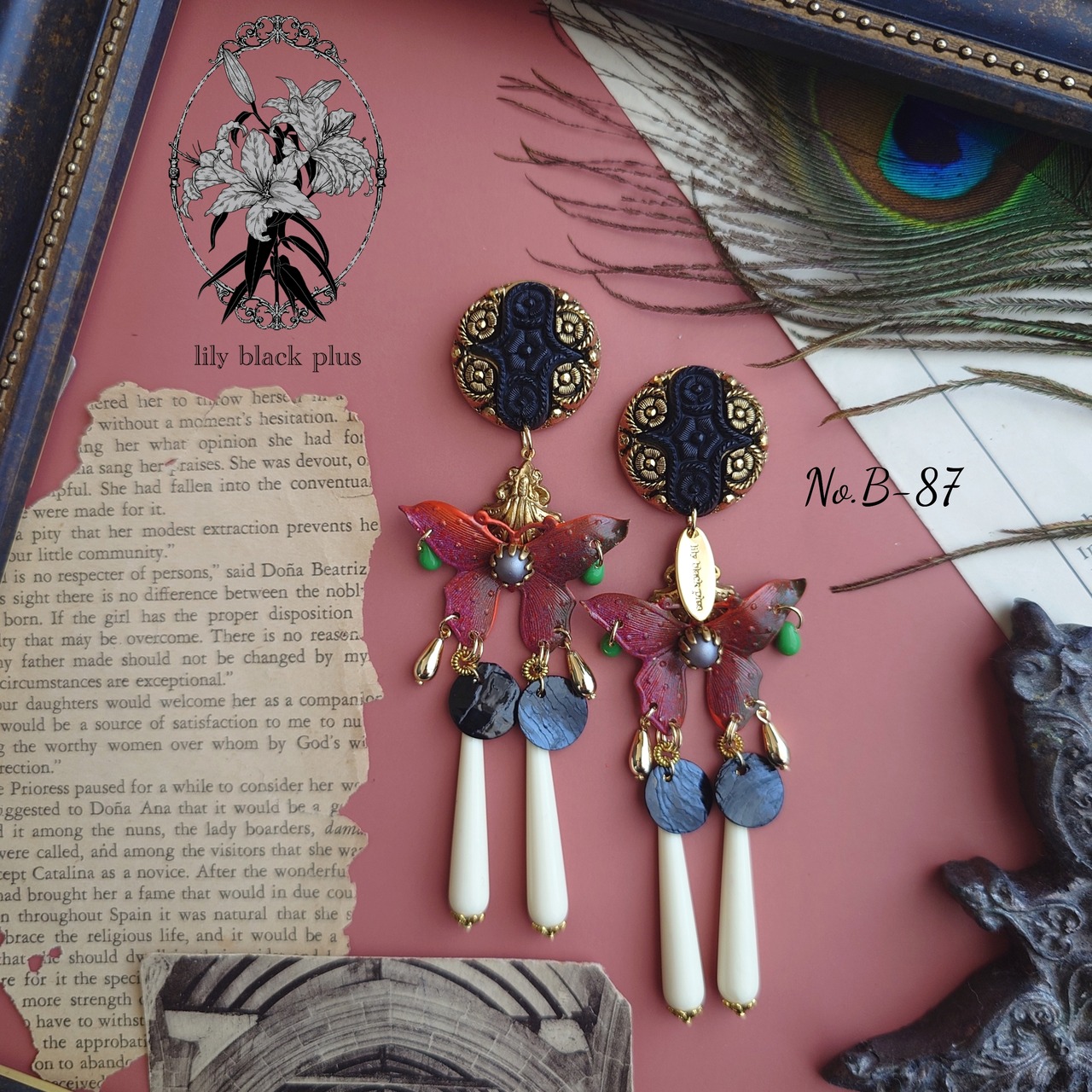 No.B-87 buttonとButterfly真鍮のホワイトビーズ ピアス/イヤリング