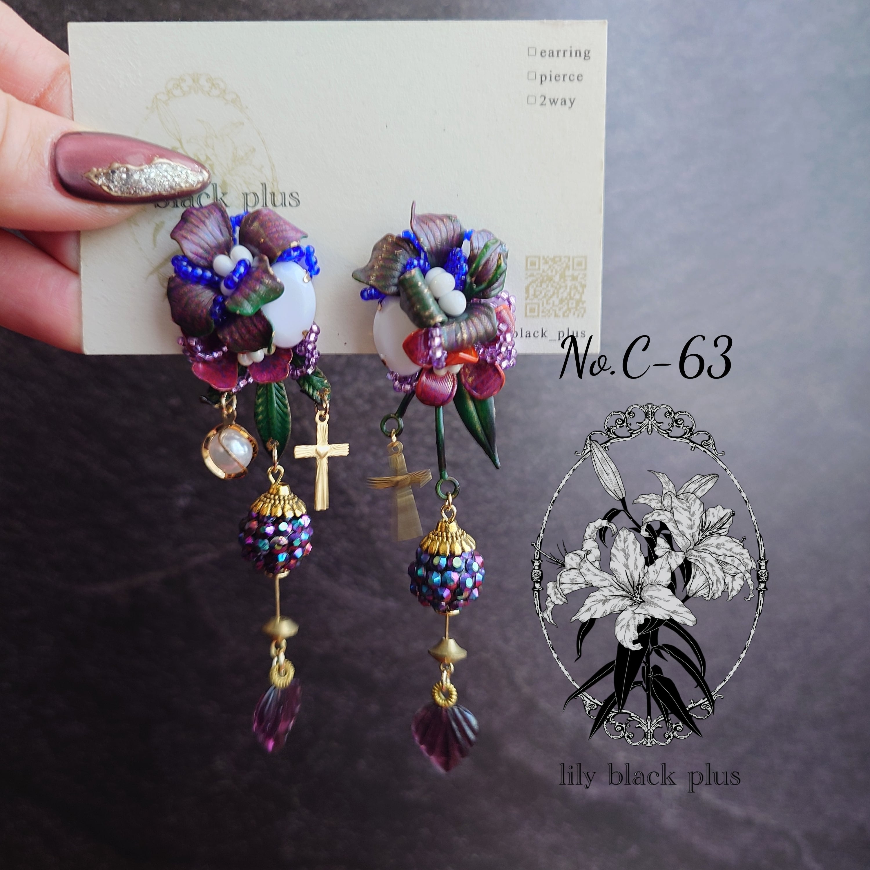 【イヤリング商品】No.C-63 〜button S series〜original paint真鍮フラワーイヤリング
