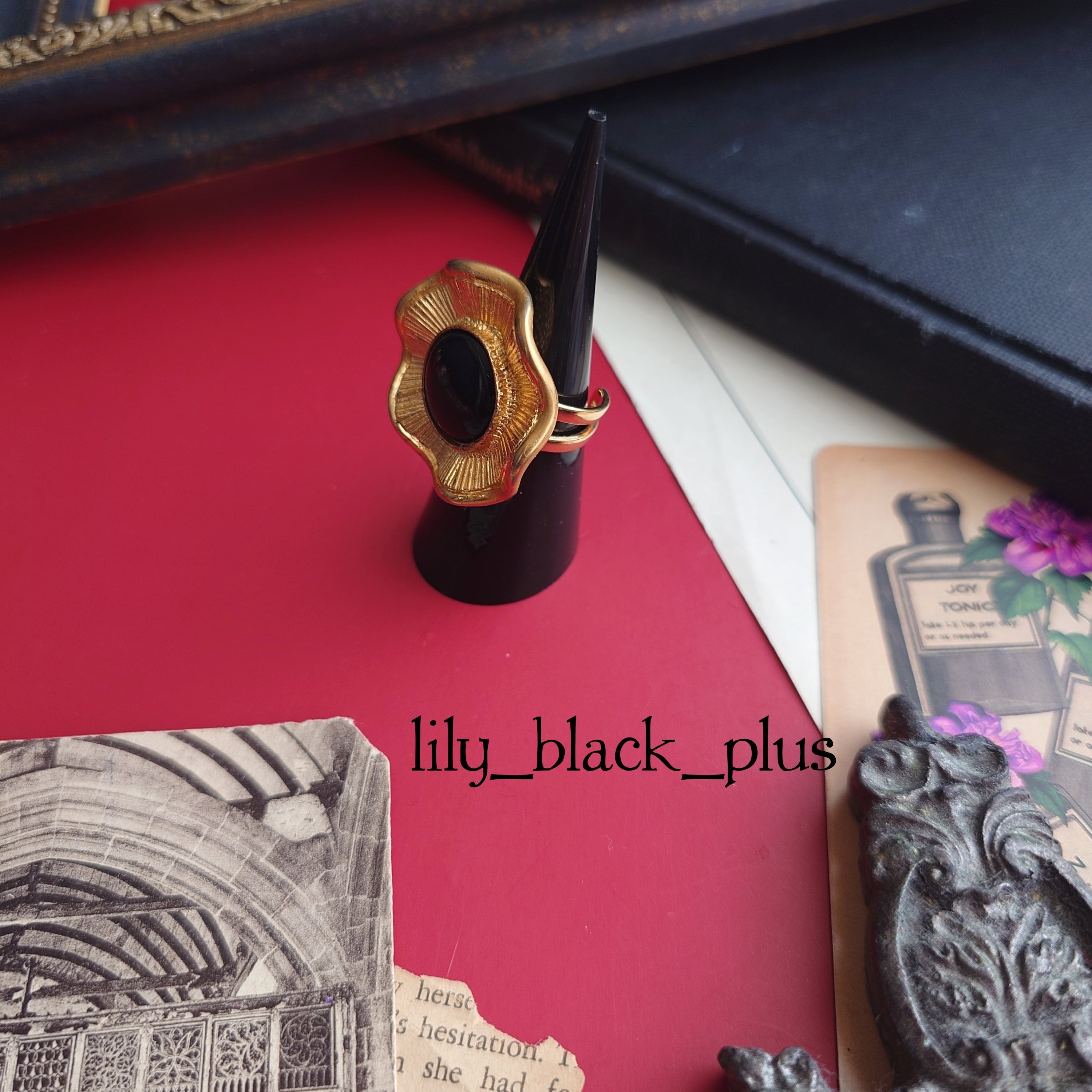 指輪の金具はゴールドカラーで裏面はレジンコーティングしています。